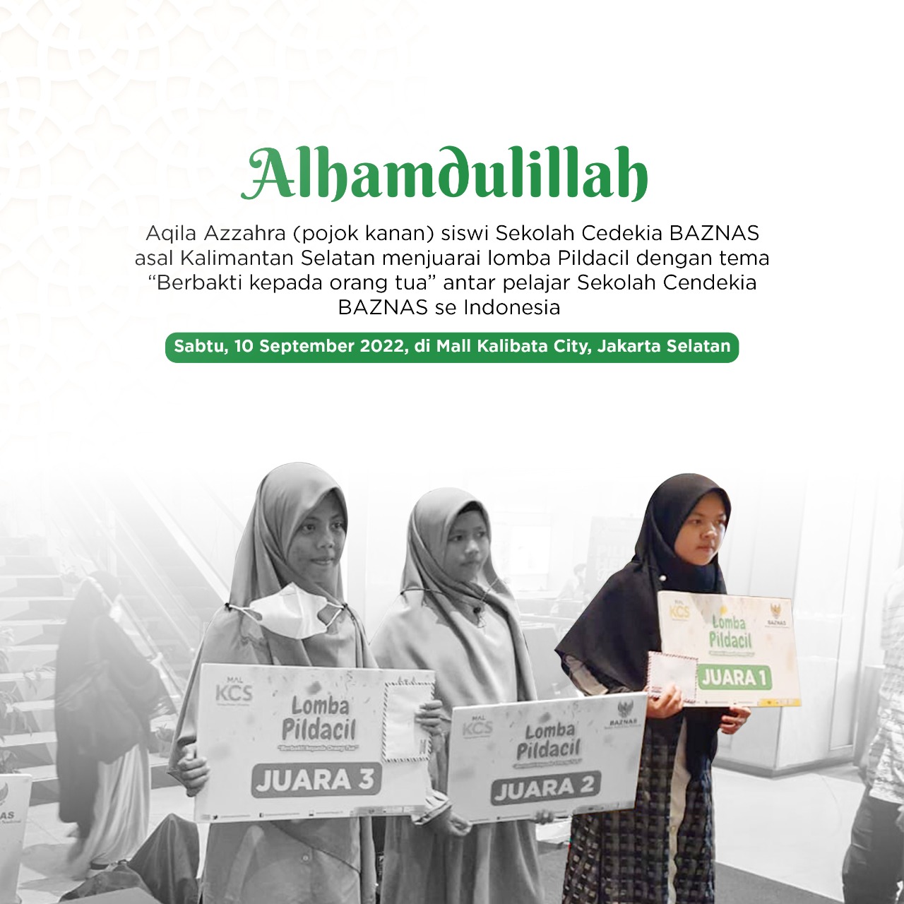 Aqila Azzahra (12) salah satu penerima Beasiswa Sekolah Cendekia BAZNAS tahun 2022, ia merupakan pelajar asal Banjarmasin Kalimantan Selatan yang lulus seleksi pada penerimaan siswa baru di Sekolah Cendekia BAZNAS tahun 2022. Tidak hanya aktif bersekolah, Aqila juga aktif dalam beberapa kegiatan lainnya seperti mengikuti lomba-lomba pengembangan diri. BAZNAS Kalsel mendapatkan kabar yang sangat menggembirakan […]