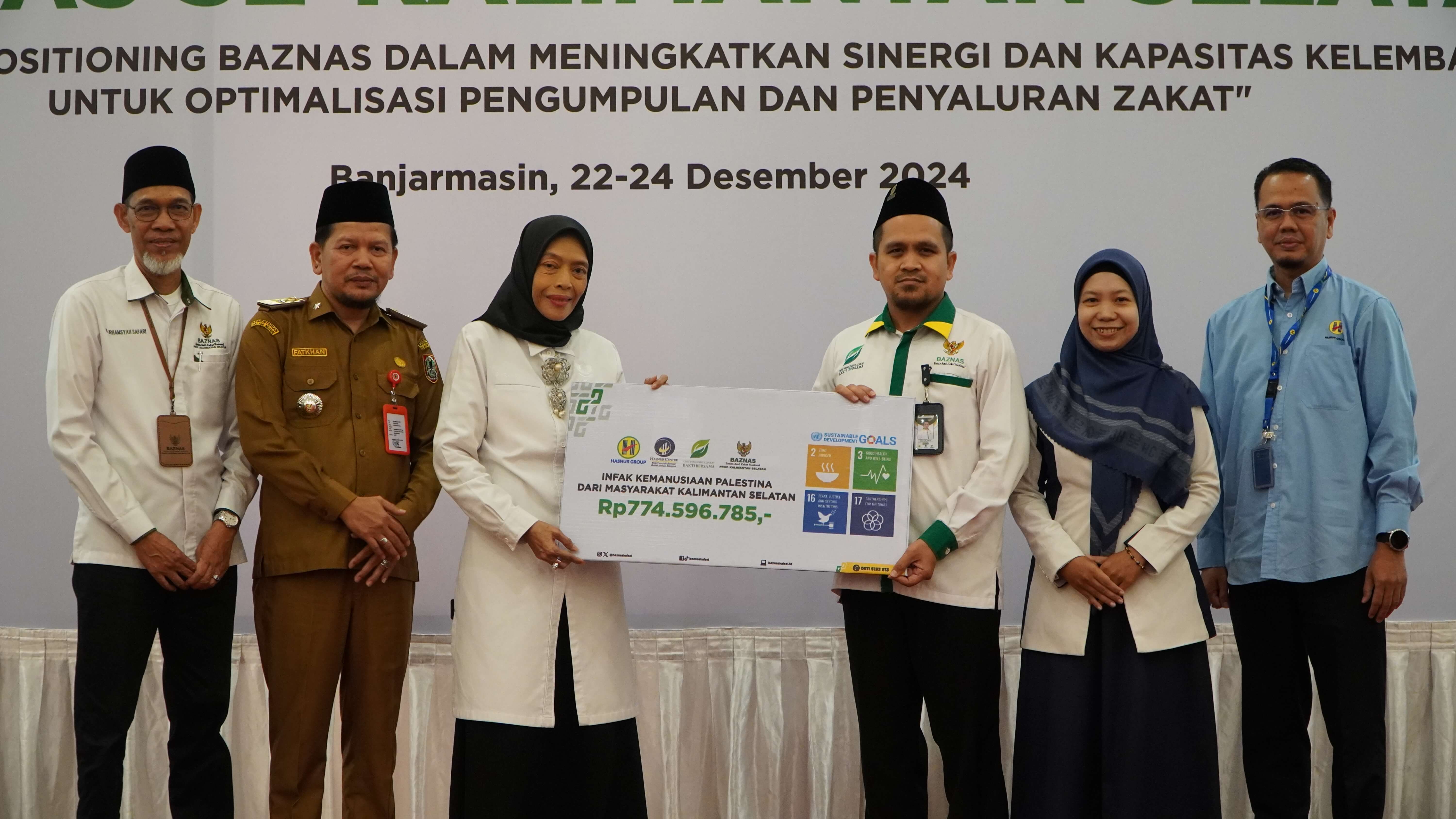 Badan Amil Zakat Nasional (BAZNAS) RI menerima penyaluran infak kemanusiaan Palestina dari BAZNAS Kalimantan Selatan (Kalsel) dengan total Rp2,3 miliar, dengan rincian sebesar Rp1,6 miliar dihimpun oleh BAZNAS Kalsel, dan Rp774 juta berasal dari Yayasan Hasnur Group dan UPZ Bakti Bersama Hasnur Group.