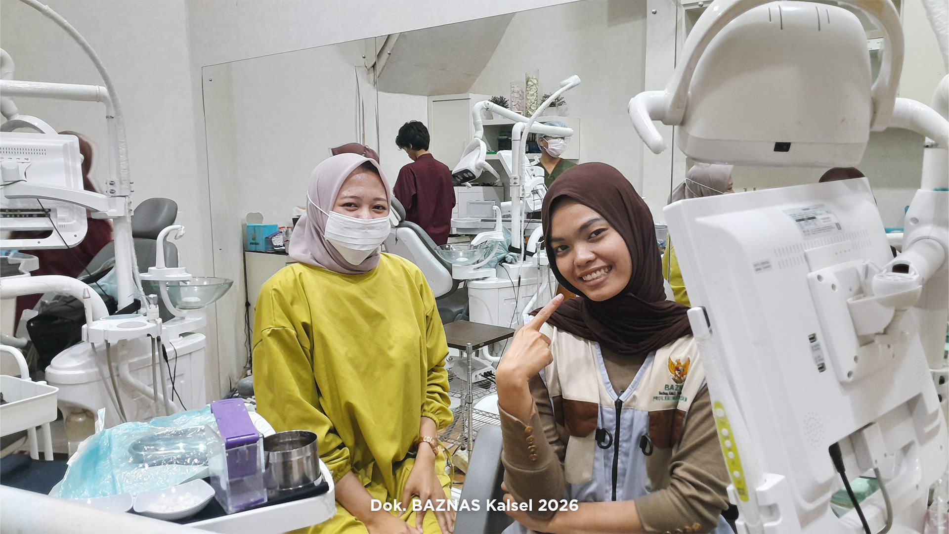 Banjarmasin — Badan Amil Zakat Nasional Provinsi Kalimantan Selatan (BAZNAS Kalsel) bekerja sama dengan Klinik BM Dental Care Banjarmasin memberikan layanan pemeriksaan dan perawatan kesehatan gigi bagi mahasiswa penerima Beasiswa Cendekia BAZNAS (BCB). Pemeriksaan dilaksanakan bertahap dibagi beberapa hari mulai tanggal 9,10 dan April 2026 dan dilanjutkan sesuai rekomendasi pemeriksaan dokter.
