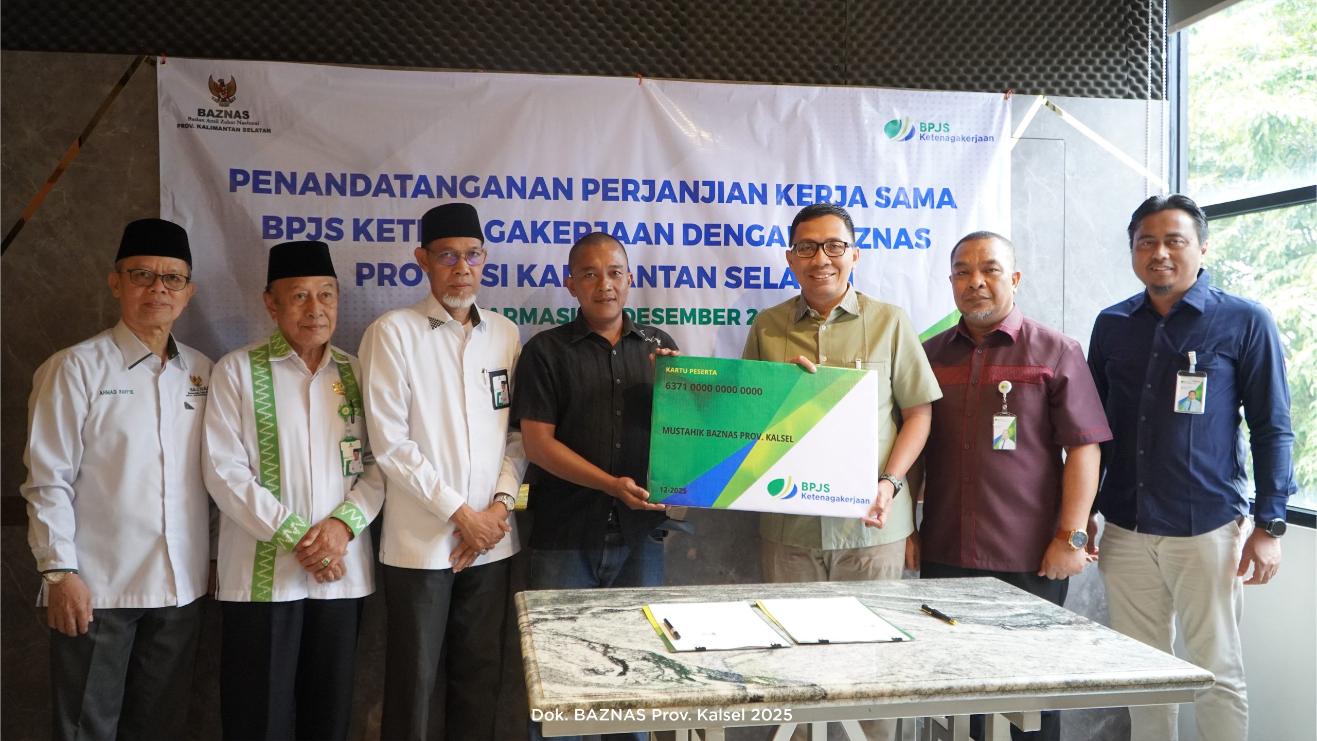 Banjarmasin, Rabu 3 Desember 2025 — BAZNAS Provinsi Kalimantan Selatan bersama BPJS Ketenagakerjaan Provinsi Kalimantan Selatan resmi menandatangani perjanjian kerja sama terkait penyelenggaraan program jaminan sosial ketenagakerjaan bagi pekerja bukan penerima upah (BPU) kategori mustahik.