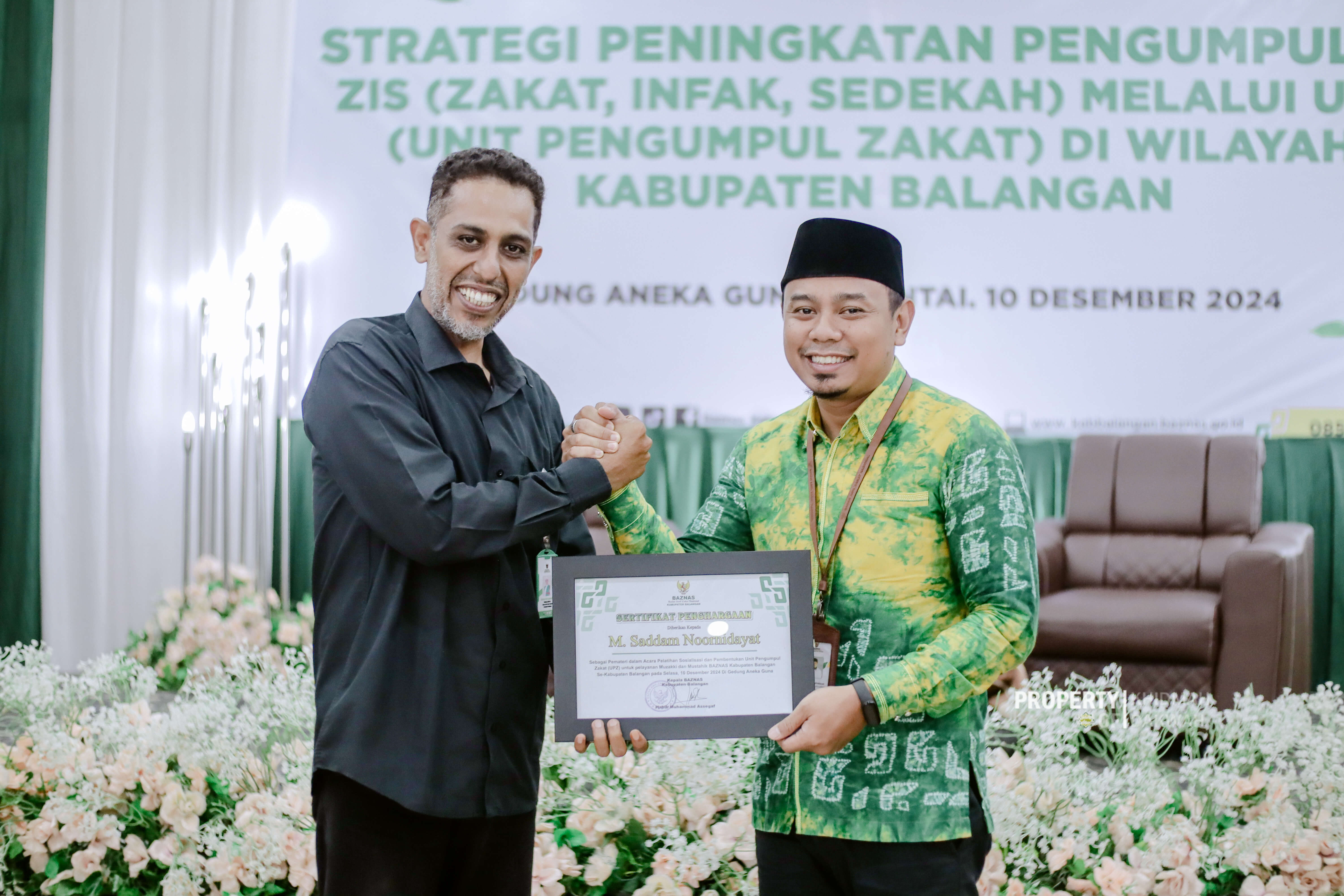 Sebagai bentuk kolaborasi kelembagaan, BAZNAS Provinsi Kalimantan Selatan turut hadir sebagai narasumber melalui Kepala Bidang Pengumpulan, Saddam Nurhidayat, dan Kepala Seksi Pengumpulan, Rahimah. Keduanya memaparkan pentingnya peran strategis UPZ dalam meningkatkan pengumpulan ZIS di wilayah Kabupaten Balangan, serta memberikan wawasan terkait tugas dan fungsi pengelolaan ZIS-DKSL secara profesional.