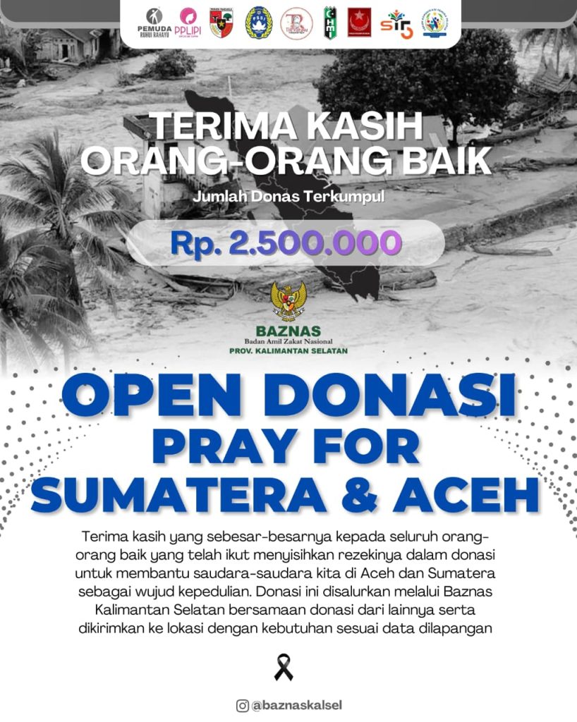 Banjarmasin, 17 Desember 2025 — Gelombang solidaritas untuk para korban bencana alam di wilayah Aceh dan Sumatera terus mengalir dari berbagai lapisan masyarakat di Kalimantan