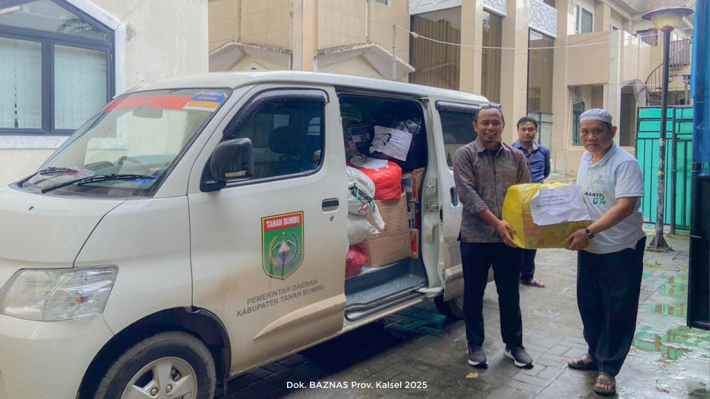 Banjarmasin — BAZNAS Provinsi Kalimantan Selatan menerima penyerahan bantuan kemanusiaan dari masyarakat Kabupaten Tanah Bumbu yang disalurkan melalui BAZNAS Kabupaten Tanah Bumbu, Selasa (23/12/2025). Penyerahan