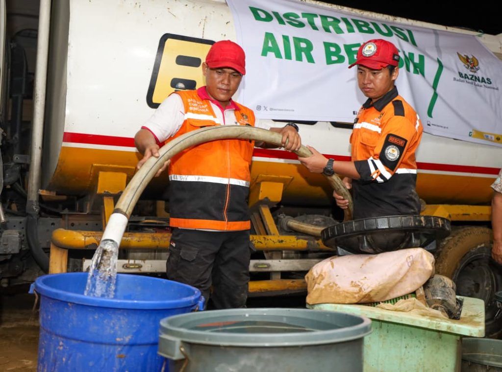 Senin, 1 Desember 2025 – Badan Amil Zakat Nasional (BAZNAS) melalui BAZNAS Tanggap Bencana (BTB) mendistribusikan air bersih bagi warga yang terdampak banjir di Kelurahan