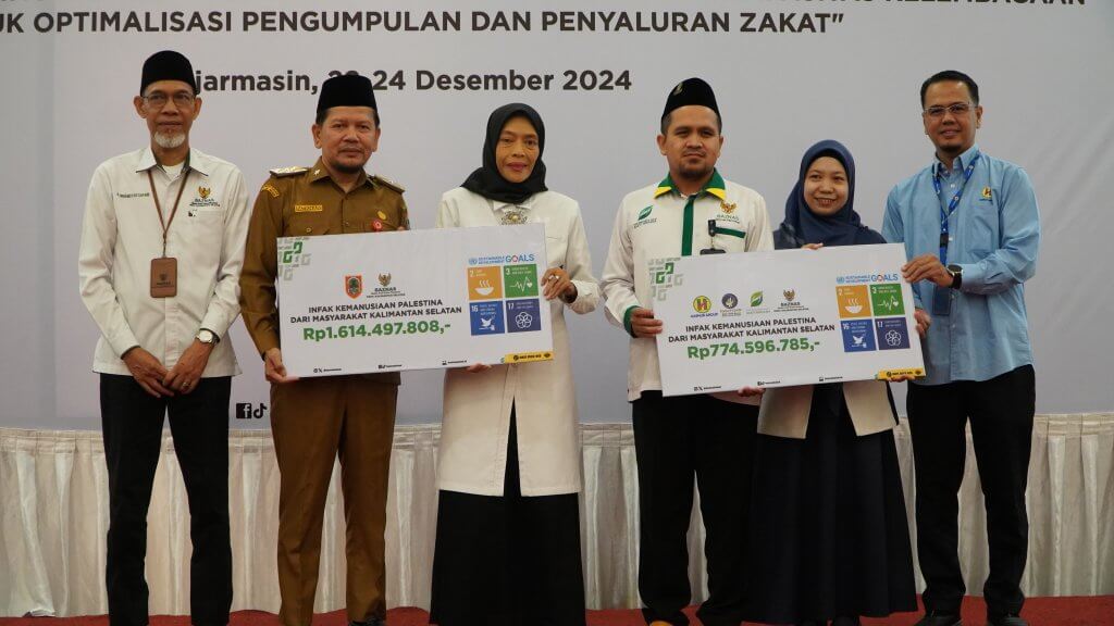 Badan Amil Zakat Nasional (BAZNAS) RI menerima penyaluran infak kemanusiaan Palestina dari BAZNAS Kalimantan Selatan (Kalsel) dengan total Rp2,3 miliar, dengan rincian sebesar Rp1,6 miliar