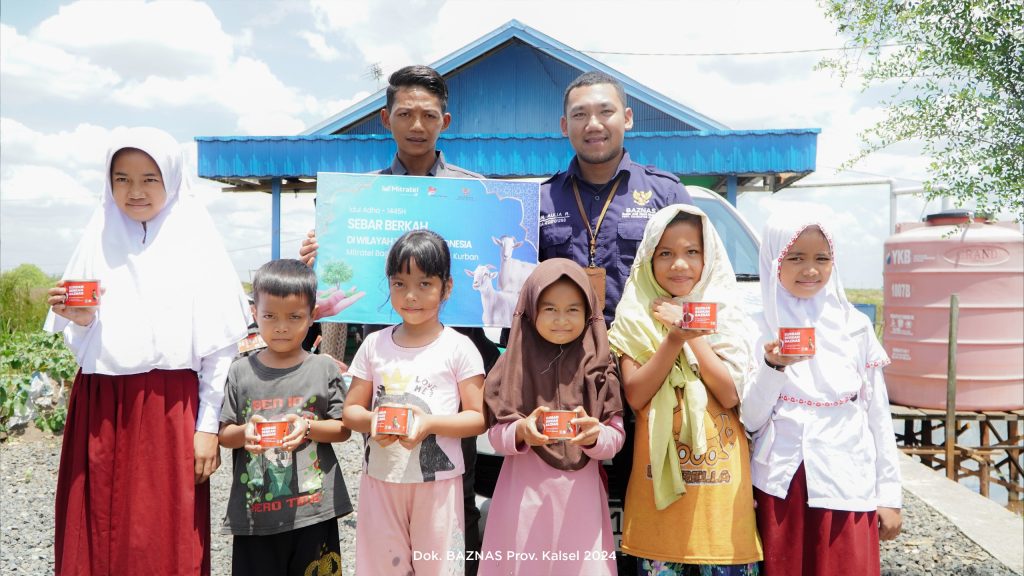 Cintapuri Banjar, 29 Agustus 2024 — BAZNAS Kalimantan Selatan berkolaborasi dengan Mitratel Regional Kalsel dalam menyalurkan bantuan daging kurban berupa 90 kaleng daging kepada warga