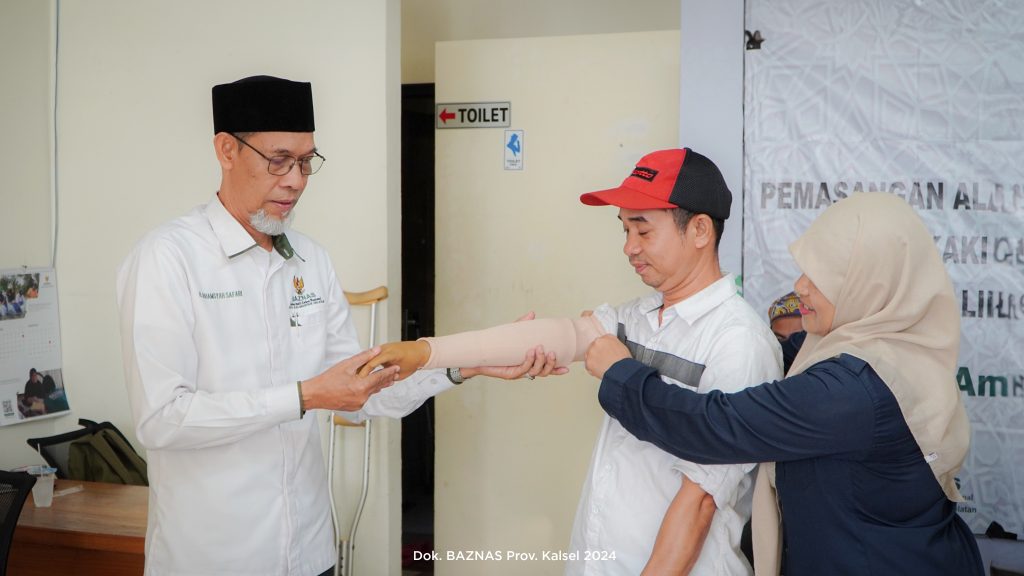 Banjarmasin, 6 Agustus 2024 – BAZNAS Kalimantan Selatan bekerja sama dengan Yayasan Anugerah Jaya Disabilitas telah berikan bantuan berupa pemberian kaki dan tangan palsu untuk