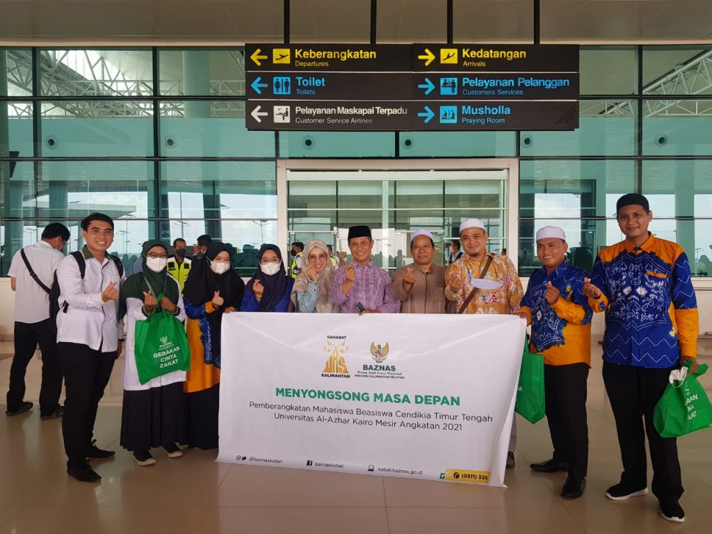 BAZNAS Kalsel mengantar dan melepas keberangkatan peserta Program Beasiswa Cendikia Timur Tengah ke Universitas Al Azhar, Cairo, Mesir di Bandar Udara Internasional Syamsudin Noor, Banjarbaru,