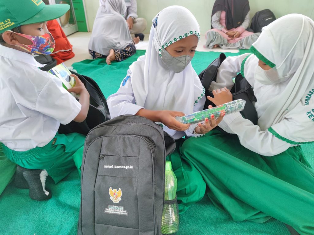 KALSEL.BAZNAS.GO.ID, BANJARMASIN – Senyum kecil Aliya Rahmawati (10) tersimpul cantik saat Tim Layanan Aktif BAZNAS (LAB) Kalimantan Selatan menyambangi MIN 13 Banjar untuk memberikan tas