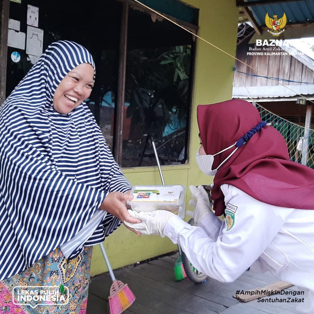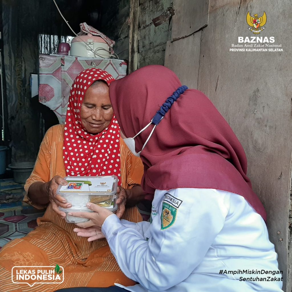 Banjarmasin (25/04/2021). Badan Amil Zakat Nasional Provinsi Kalimantan Selatan (BAZNAS Kalsel) membagikan paket Ramadhan Bahagia kepada perempuan lanjut usia di Gang Al Huda, Kelurahan Kuin