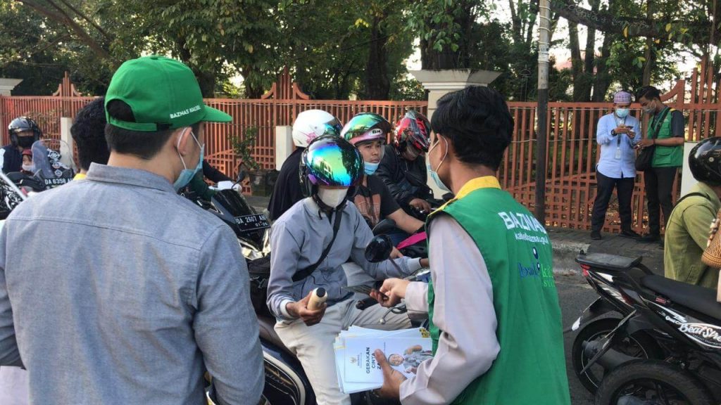 Banjarmasin (23/04/2021). Pada hari ke-11 Ramadhan, Baznas Kalsel kembali bagikan takjil kepada pengguna jalan yang ada di sekitar lampu merah dekat Mesjid Raya Sabilal Muhtadin.