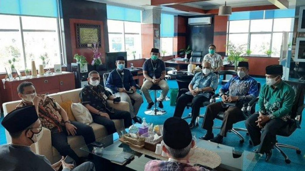 BANJARMASIN – Suasana kekeluargaan sangat kental ketika kunjungan pimpinan Baznas Kalsel di Kantor Pusat Bank Kalsel Jalan Lambung Mangkurat, Kota Banjarmasin, Selasa (20/4/2021). Kedatangan rombongan BAZNAS Kalsel diterima