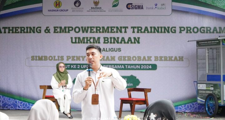 Saptian Hadi, perwakilan BAZNAS Kalsel, memberikan materi kelembagaan yang menjelaskan peran BAZNAS dalam mendukung pemberdayaan ekonomi masyarakat melalui berbagai program yang telah berjalan. “Kami berharap, materi ini dapat memperkuat pemahaman peserta tentang peran BAZNAS dalam membantu pelaku UMKM agar dapat berkembang secara berkelanjutan,” ujar Hadi.