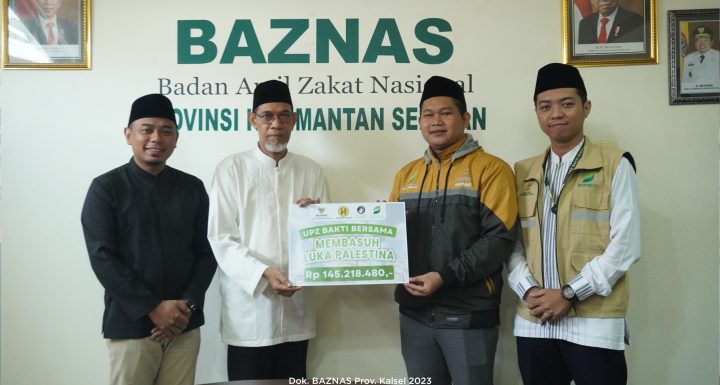 Banjarmasin (24/11/2023) – Unit Pengumpul Zakat Bakti Bersama serahkan langsung pengumpulan donasi kemanusiaan Palestina ke BAZNAS Provinsi Kalimantan Selatan di kantor BAZNAS Kalsel di lantai 2 Islamic Centre Sabilal Muhtadin Banjarmasin.