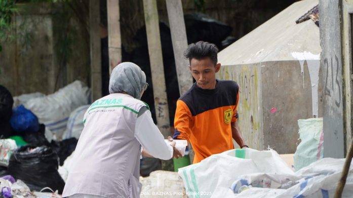 BAZNAS Kalsel bagikan 57 porsi hidangan fidyah kepada petugas kebersihan yang bekerja di Tempat Pembuangan Sampah Sementara (TPS) di Kota Banjarmasin.