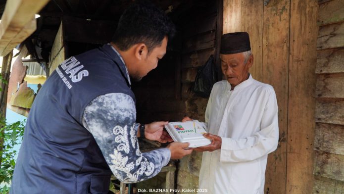 Badan Amil Zakat Nasional (BAZNAS) Provinsi Kalimantan Selatan (Kalsel) kembali menunjukkan komitmen sosialnya melalui penyaluran fidyah kepada masyarakat lansia di Pulau Sugara, Kecamatan Alalak, Kabupaten Barito Kuala. Pada kesempatan kali ini, sebanyak 200 paket makanan siap saji dibagikan secara langsung kepada kelompok lanjut usia yang membutuhkan asupan gizi.