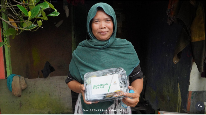BAZNAS Kalsel menyalurkan hidangan fidyah kepada masyarakat prasejahtera di sekitar lokasi terdampak banjir, sebagai upaya meringankan beban pemenuhan pangan harian warga di masa transisi pascabencana.