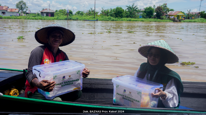 Susur Sungai, BAZNAS Kalsel Salurkan Paket Ramadhan Ke Lok Baintan