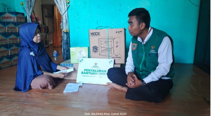 BAZNAS Provinsi Kalimantan Selatan menyalurkan bantuan biaya hidup kepada Ibu Marisa, seorang janda dengan empat anak yang tinggal di kawasan Jalan Padat Karya Blok Batu Merah, Banjarmasin. Ia harus berjuang seorang diri untuk memenuhi kebutuhan hidup keluarganya.