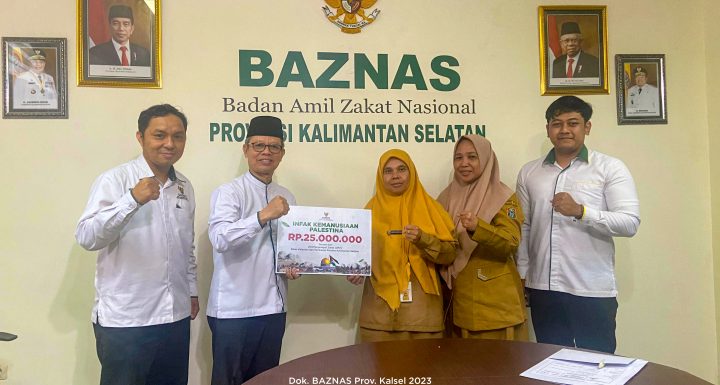 Banjarmasin (4/11/2023) – Unit Pengumpul Zakat (UPZ) Dinas Kelautan dan Perikanan Provinsi Kalimantan Selatan menyerahkan langsung donasi kemanusiaan pada program Membasuh Luka Palestina di kantor BAZNAS Kalsel di lantai 2 Islamic Centre Masjid Sabilal Muhtadin Banjarmasin.