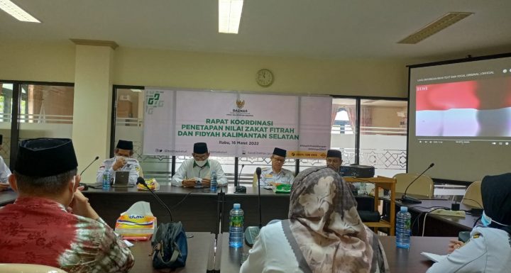 Rabu, (16/03/2022), BAZNAS Kalsel mengundangbeberapa intansi terkait seperti Kanwil Kemang Kalimantan Selatan, MUI Kalimantan Selatan, Biro Kesra Provinsi Kalimantan Selatan, Dinas Perdagangan Provinsi Kalimantan Selatan, Forum Bulog Kalimantan Selatan dan PWNU Wilayah Kalimantan Selatan dalam menetapkan nilai Zakat Fitrah dan Fidyah di Kalimantan Selatan.